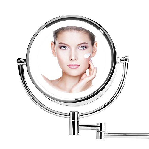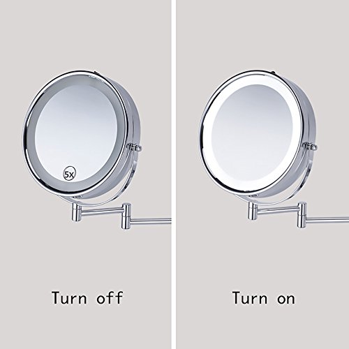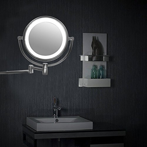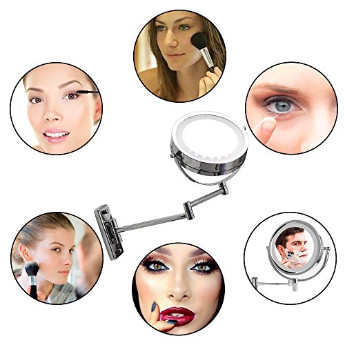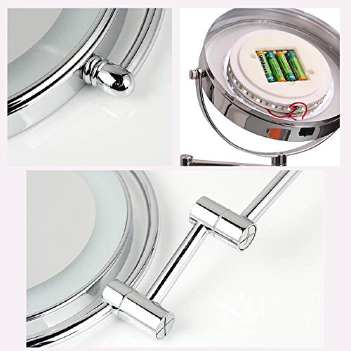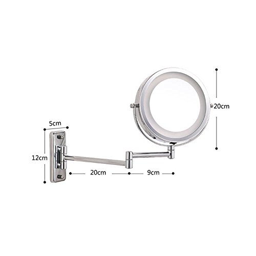 ? High-quality mirror material, crystal clear, no deformation. ? Design flexibility, the appearance of fine, exquisite workmanship. ? To save power, there is a controllable switch.Fixed on the mirror wall, stable and safe. ? With LED lights, you can illuminate your face when the light is not good, It's a good tool for your makeup and shaving. ? The mirror can be rotated and adjusted in the range of 360 degrees. It can be easily rotated to the position we need, so that shaving and makeup can be clearer.