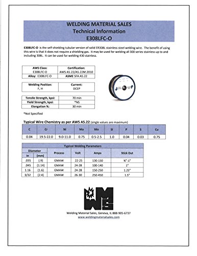 - It may be used for welding all 300 series stainless up to and including 308L