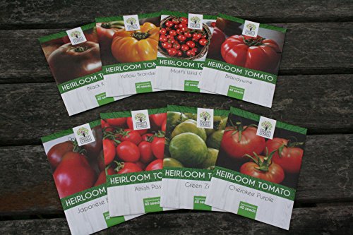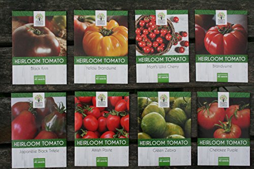 Heirloom Tomato Seeds Assortment - Eight Organic and Non-GMO Varieties: Brandywine, Cherokee Purple, Black Krim, Green Zebra, Amish Paste, Japanese Black Trifele, Yellow Brandywine, Matt's Wild Cherry