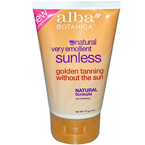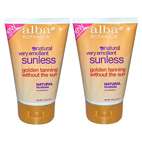 This Bundle includes two tubes of 4 oz. Alba Botanica Natural Very Emollient Sunless Tanning Lotion. About the Product * New and Improved * Natural * Very Emollient Sunless * Golden Tanning without the Sun * Natural Formula * Non-Streaking * 100% Vegetarian Ingredients * No Animal Testing Very emollient and botanically moisturizing natural sunless tanner. Easy to use, non-streaking formula absorbs quickly for a natural looking tan in less than 3 hours.Feature