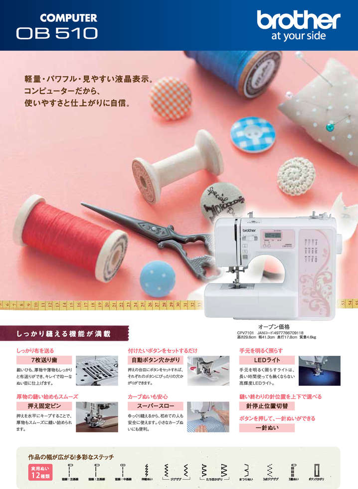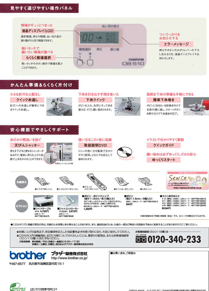 ●付属押え : ジグザグ押え/たち目かがり押え/ボタン穴かがり押え