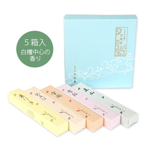 This "Komori incense" is a set of five scents based on sandalwood of Kyo incense.