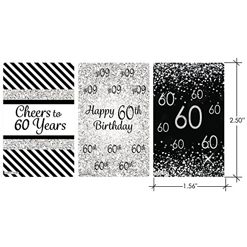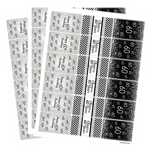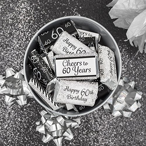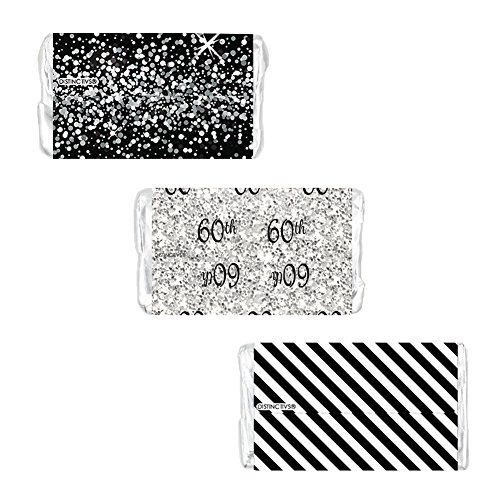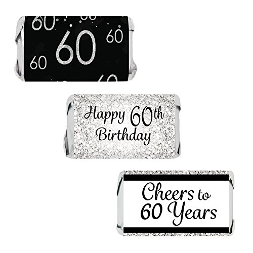 Black and Silver 60th Birthday Party Favors - Mini Candy Bar Wrapper Stickers (54 Count)