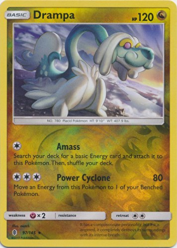 -. Binding : Toy -. Brand : Pokémon -. EAN : 0642645148473 -. Feature : A Single Card From The Pokemon Trading & Collectable Card Game (TCG/CCG) -. IsAdultProduct : 0 -. Label : The pokemon company -. Manufacturer : The pokemon company -. PackageQuantity : 1 -. ProductGroup : Toy -. ProductTypeName : TOYS_AND_GAMES -. Publisher : The pokemon company -. Studio : The pokemon company -. Title : Drampa - 97/145 - Holo Rare - Reverse Holo - Sun & Moon: Guardians Rising -. UPC : 642645148473