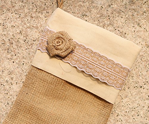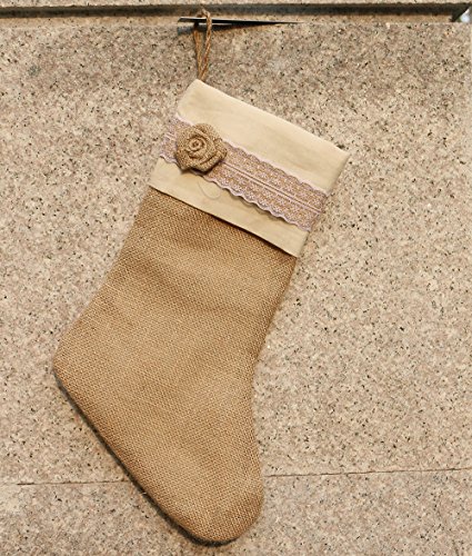 Handmade Burlap Christmas Stocking Natural Jute Holiday decoration with rose decor 15" (Bare Burlap)