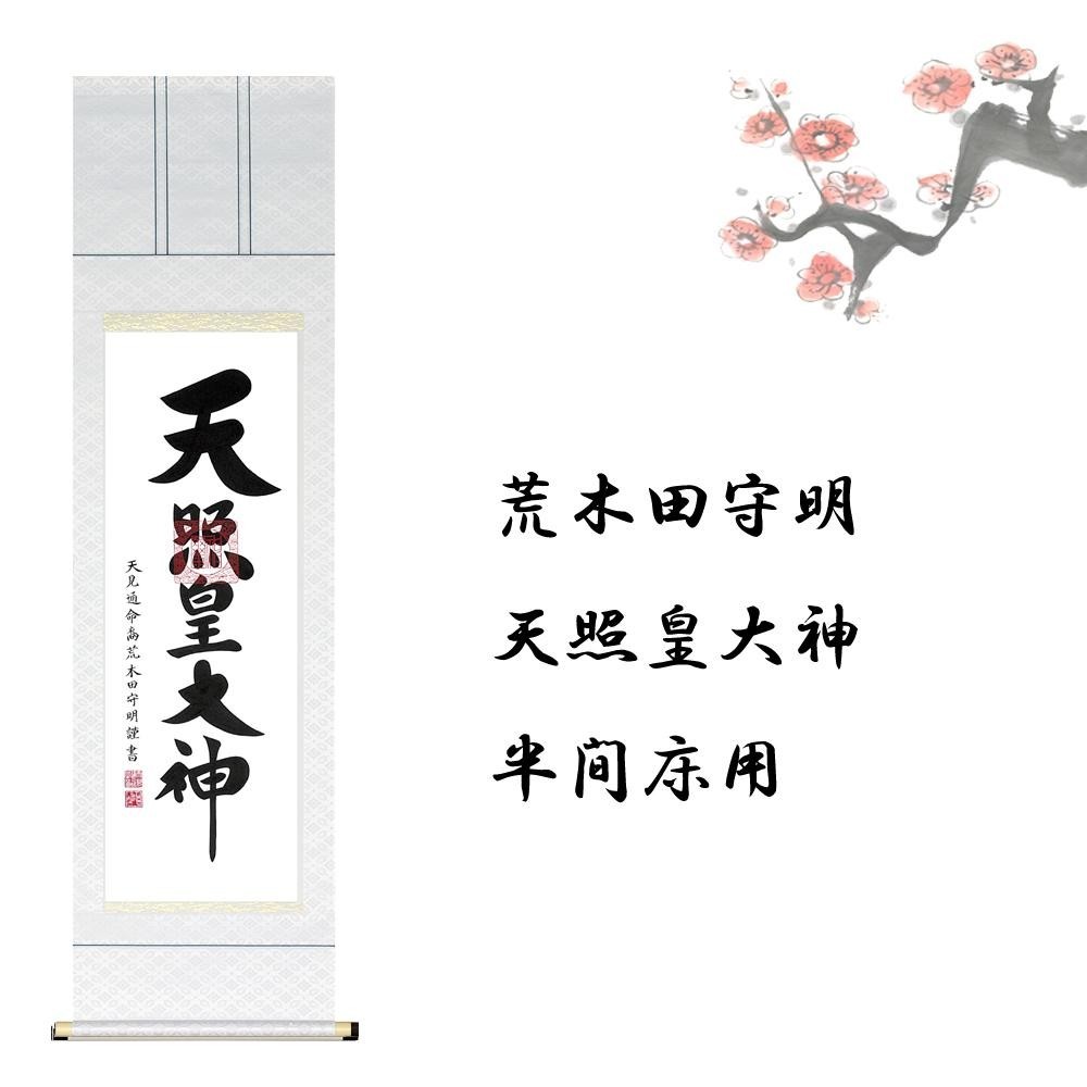 太陽を象徴する神様だといわれた天照皇大神のお名前が書かれている掛軸です。天照皇大神の御神号を掛けることは天照皇大神がいつも自分の家族を守ってくださることへの感謝の表れです。年中掛けとしてご使用いただけます。 |