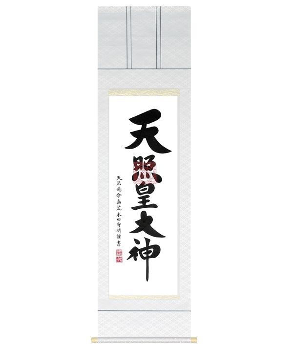 | 太陽を象徴する神様だといわれた天照皇大神のお名前が書かれている掛軸です。天照皇大神の御神号を掛けることは天照皇大神がいつも自分の家族を守ってくださることへの感謝の表れです。年中掛けとしてご使用いただけます。 |