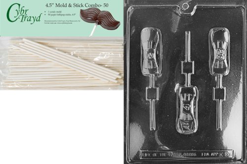 Cybrtrayd 45St50-K084 Sports Car Pop Kids Chocolate Candy Mold with 50 Cybrtrayd 4.5-Inch Lollipop Sticks