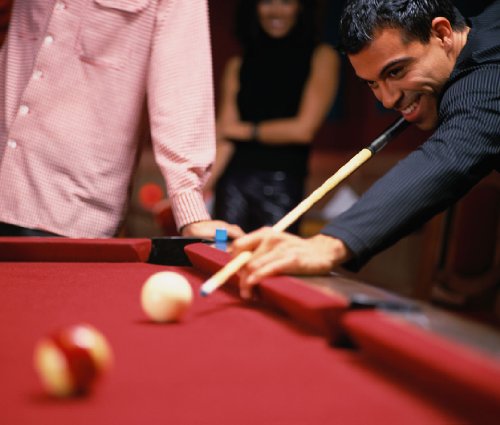 • Features dark green background with white diamond arrow design on pool cue shaft