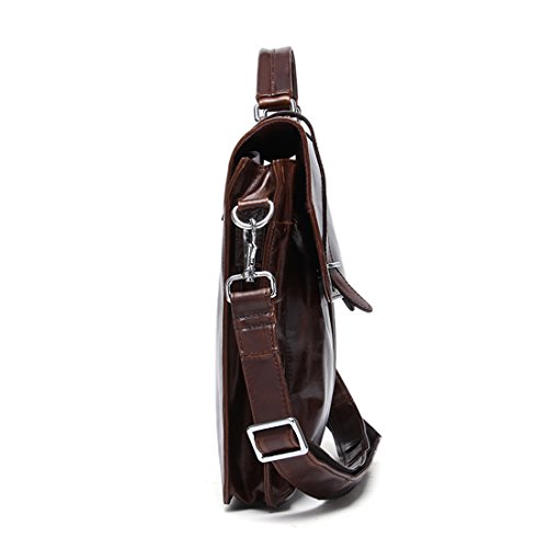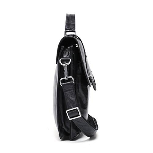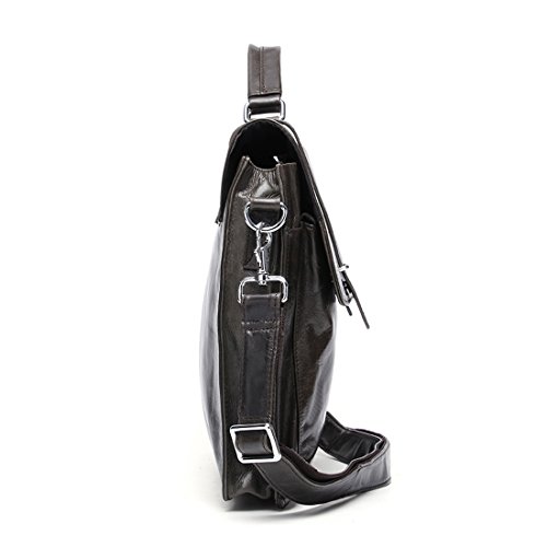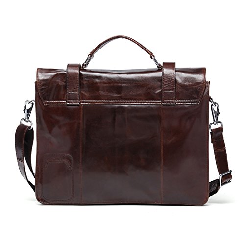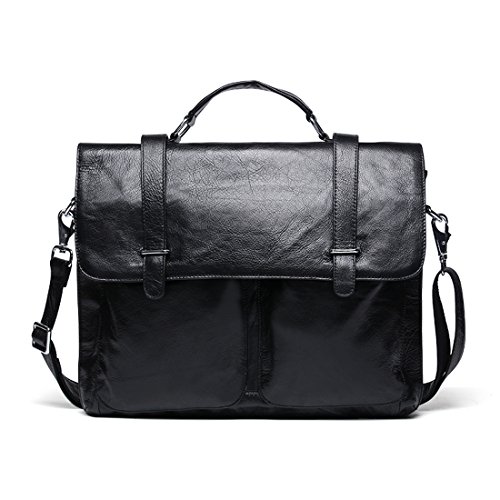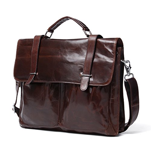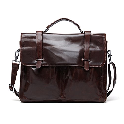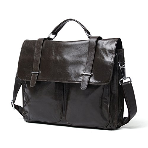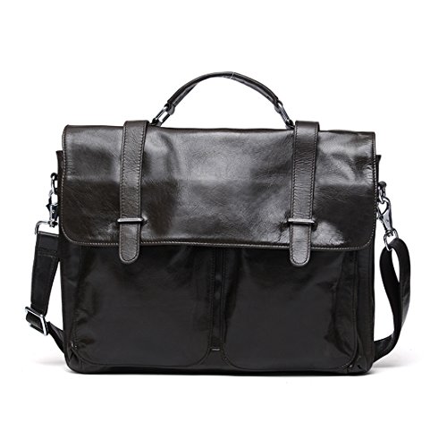 Product Description Product Specification Style: Casual Closure: Buckle Upper Material: Top leather Lining Material: Polyester Product Dimension Weight: 1.3kg Size: 37*5*27 cm(L*W*H) Top handle: 7cm Shoulder strap: up to 140cm Color: Black\ Chocolate\ Green brown Product Structure 1. Soft tote handle. 2. Detachable and adjustable shoulder strap. 3. Front two zipper pouches, only for small gadgets,like A4 files. 4. Main compartment with zip compartment fits up to 14' laptop or less. 5. One padded pocket with two additional pockets for your necessaries. Product Feature Top layer leather - retro small pockets,using the first layer of cowhide,soft cortex. Buckle closure - keeps the briefcase firmly closed yet still accessible and maximum security for valuables. Function - most of your daily necessities can be loaded. Leather Maintenance Tips 1. In use, don't scratch, not the rain, not spot pollution. 2. Characteristic of the leather surface gloss, should pay attention to anti-fouling, while high grade leather needs particular attention. 3. Wring dry towel stained with water once a week, repeat several times, gently wipe it. 4. Leather may not be in the sun exposure, exposure will lead to cracked or faded. 5. Caught in the rain, water has to be dry, dry in the ventilation.