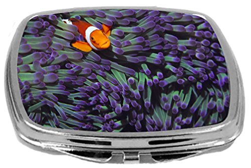 Rikki Knight Clown Fish Hiding Among Purple Sea Anenomies Design Compact Mirror, 17 Ounce