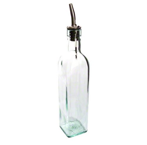 - Glass Oil and Vinegar Cruet Made with stainless steel pourer and glass bottle