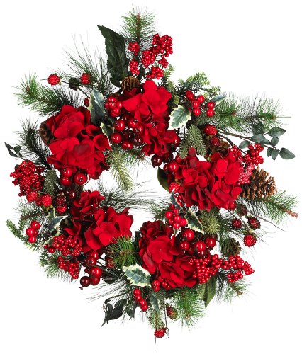 Nearly Natural 4661 Hydrangea Wreath Holiday, 22-Inch