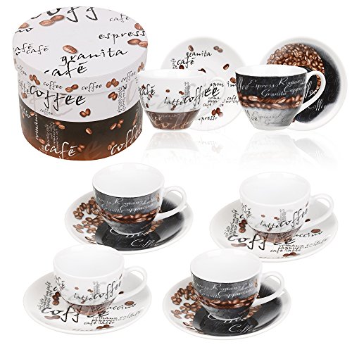 Studio : EG Homewares Publisher : EG Homewares Binding : Kitchen Product Description These mugs are a great way to have a quick Espresso and each mug has their own matching plate to add to the stylish designs. It comes in a storage gift box making for a perfect present to give to a friend or relative. 0