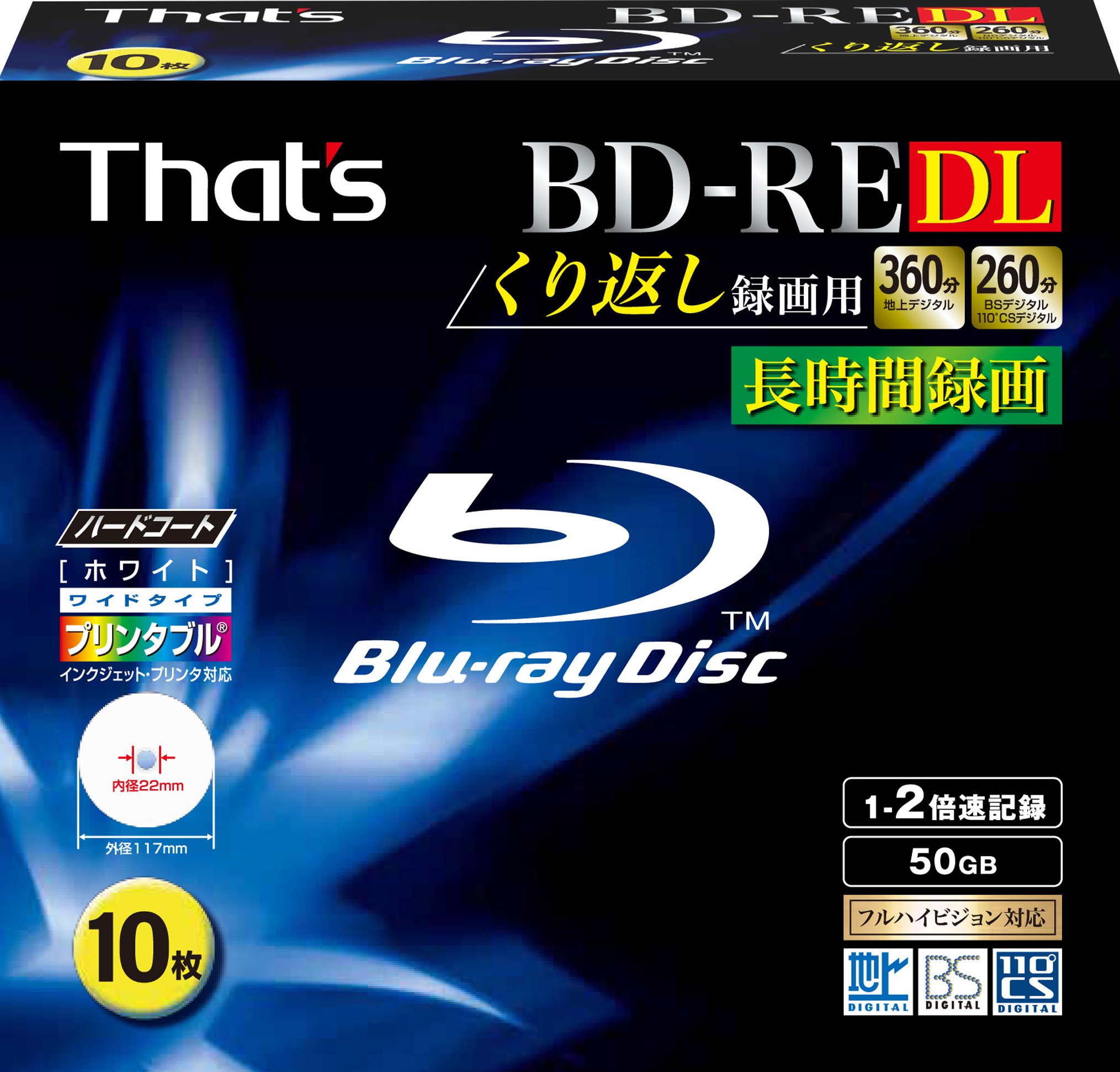 10 Taiyo Yuden Bluray Discs 50 GB BD-RE DL 2x Speed Rewritable Blu Ray Inkjet Printable