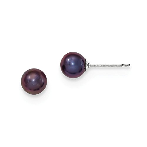 Solid 925 Sterling Silver 6-7mm Black FW Cultured Round Simulated Pearl Stud Earrings