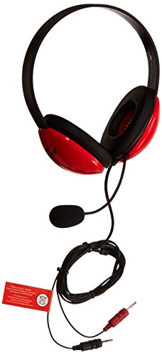 Califone 1465269 Listening First Headset with Dual Plugs for Use with Mac and Windows, 3.5 mm, 40MW, 10 KHz, 5-1/2' Cord, Red