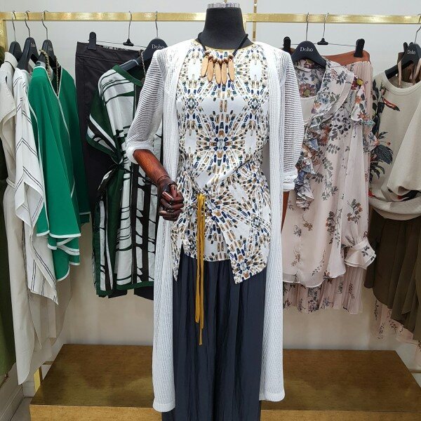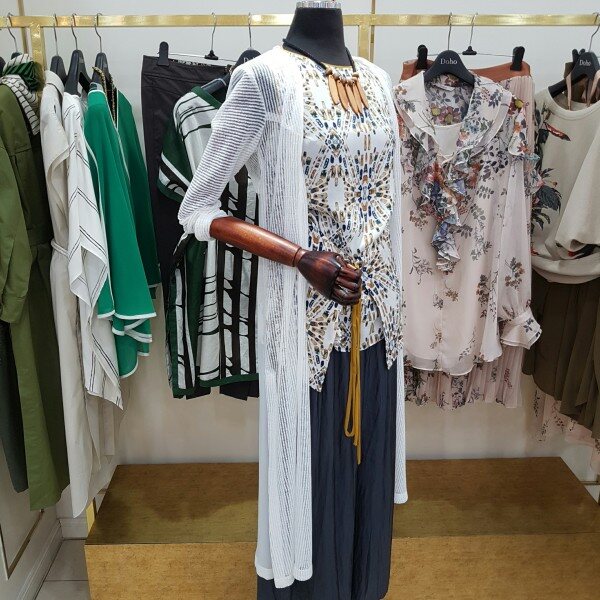 쉬폰 소재가 믹스된 형태의 롱 가디건 입니다