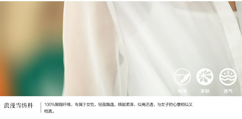 轻薄舒适,似掩还透,不易起皱非常适合春夏季贴身穿着。 轻盈雪纺 |
