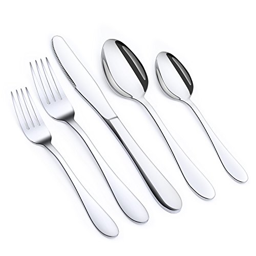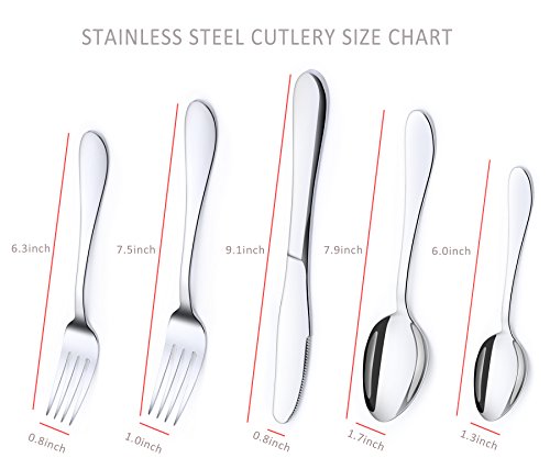 SUPREME QUALITY: Unlike cheaply made flatware sets that sooner or later will wear out, the Pofesun full flatware set is here to stay. Made of 18/0 stainless steel, this flatware set will never rust, corrode or lose its shine.(Warm Tip: Do not leave your flatware sitting in water, as soaking can permanently damage the metal, and please make sure your flatware is completely dry before you store it. Your daily behavior during use of your flatware keeps each piece bright and shiny).