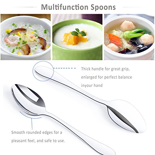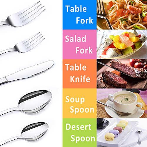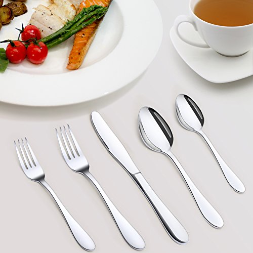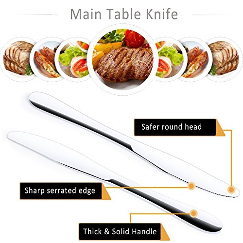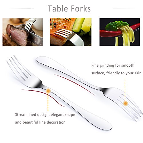 SIMPLE & ELEGANT DESIGN: The design of flatware set is simple with no crazy patterns or shapes. Shiny and sleek lines, especially the edges where your fingers hit are smooth for safe use. High hardness, no distortion, durable construction. This perfect looking cutlery set is essential for the impeccable table setting to impress family and friends, appropriate for formal events or everyday meals.