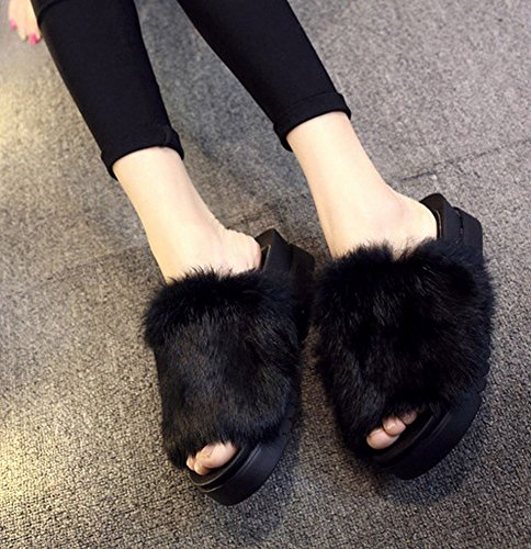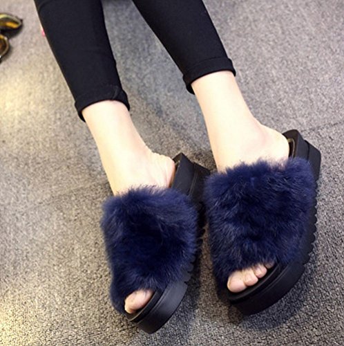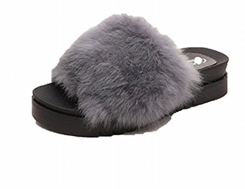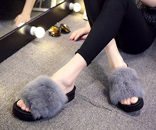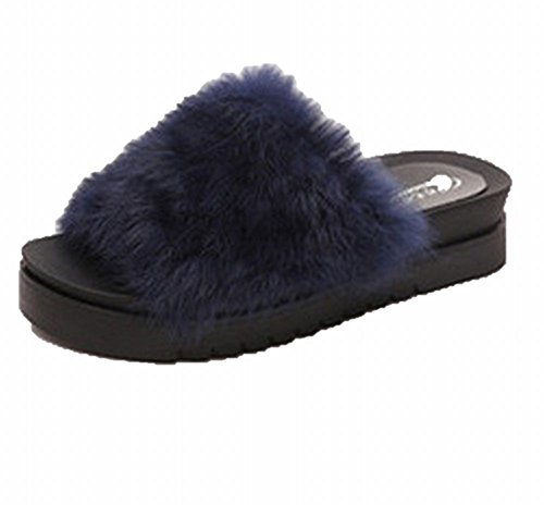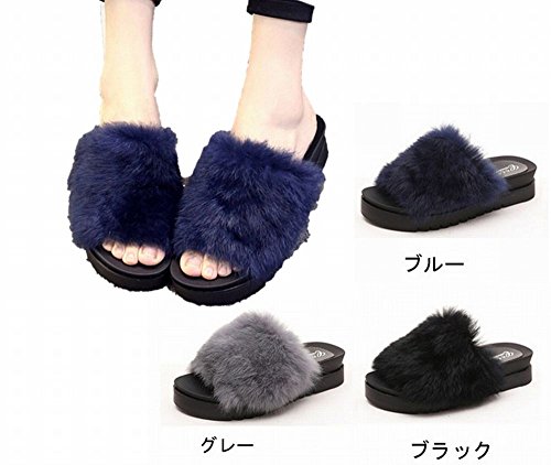 -. Title : Ric (リック) ファーサンダル ラビット リアル ファー ヒール 4CM 黒 グレー 紺 もこもこ ふわふわ あったか おしゃれ 楽ちん 歩きやすい 痛くない サンダル 秋 冬 トレンド スタイル カジュアル コーデ