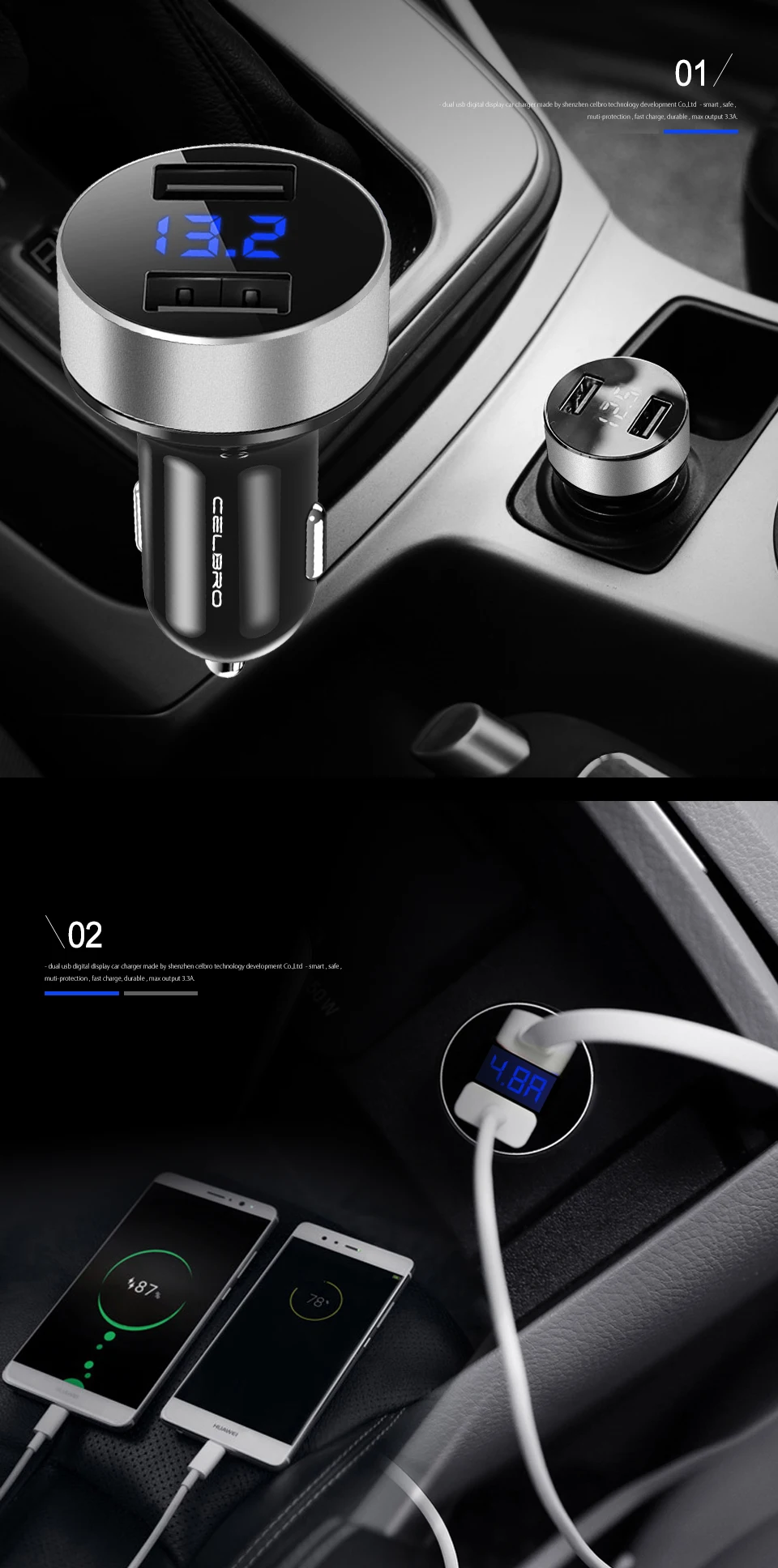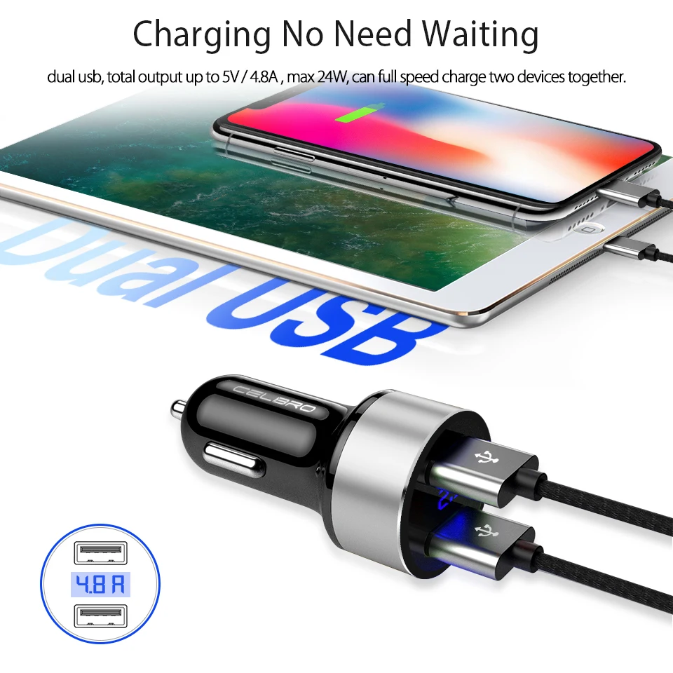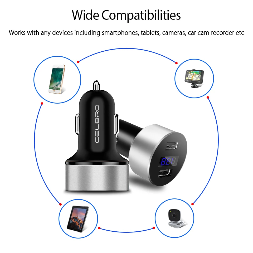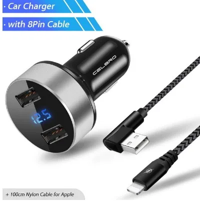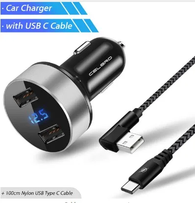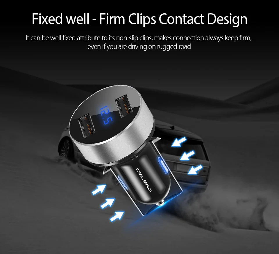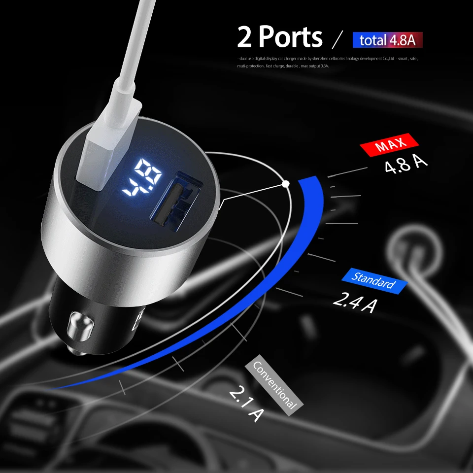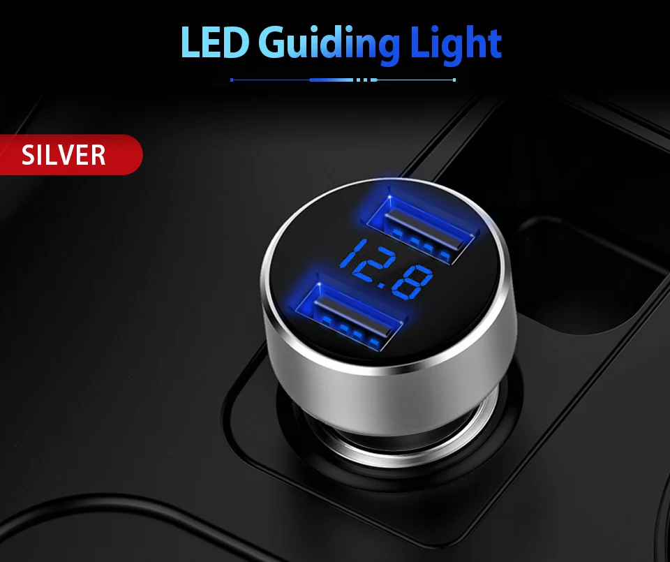 Feature 6:car phone charger 2 usb ports digital led display