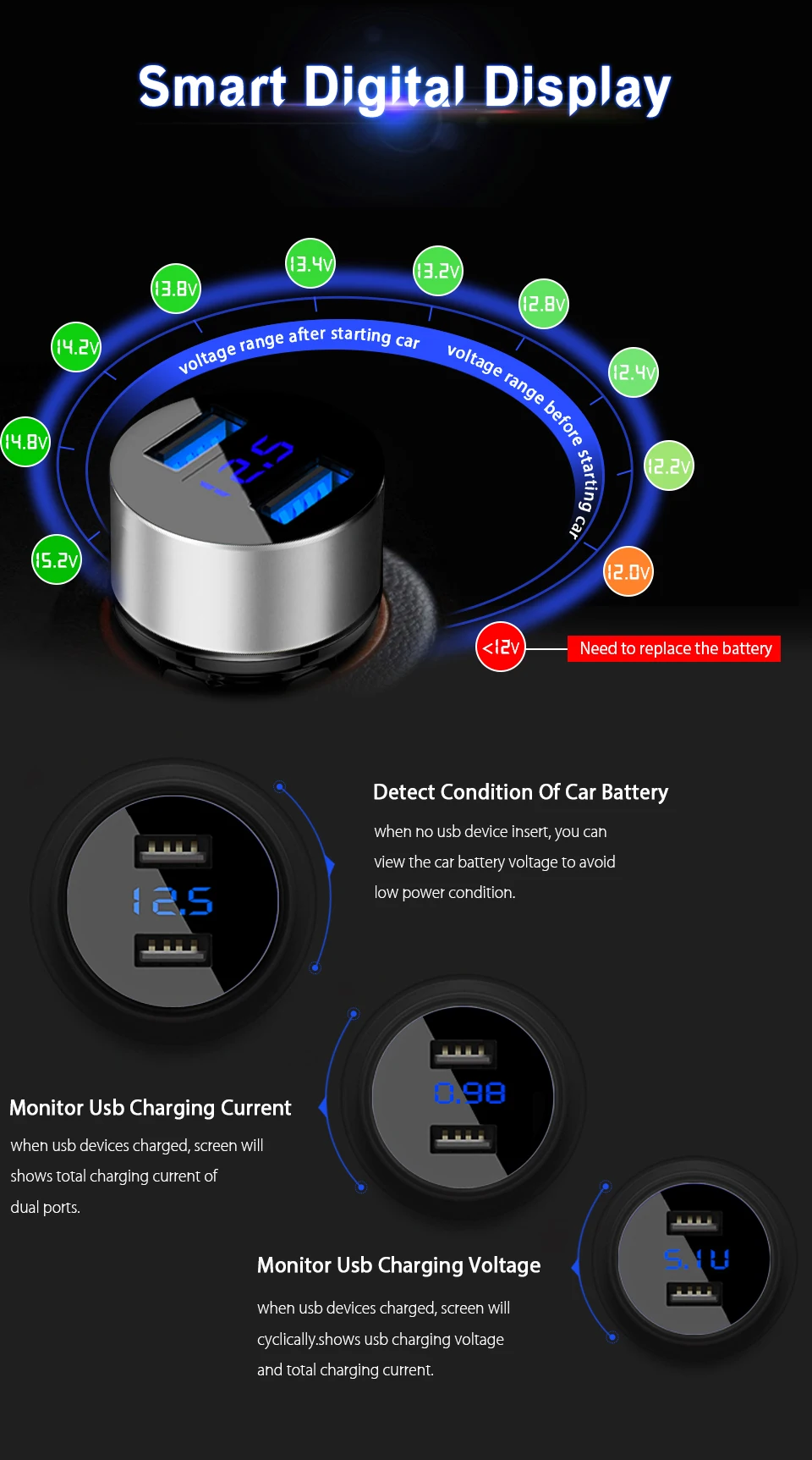 Model Number:car charger digital display