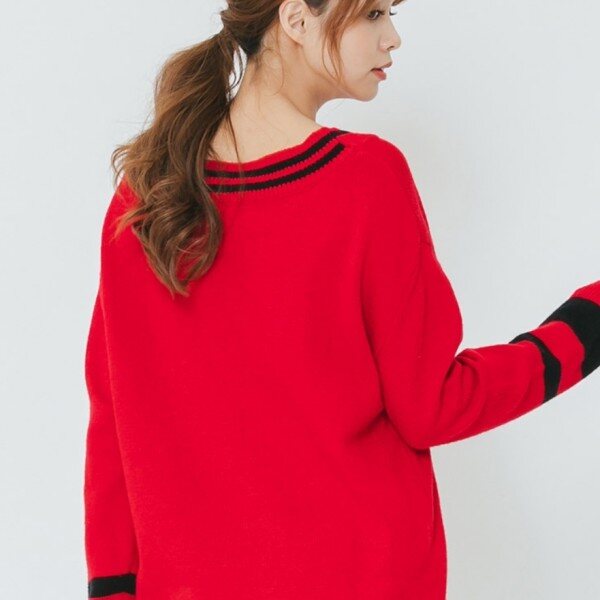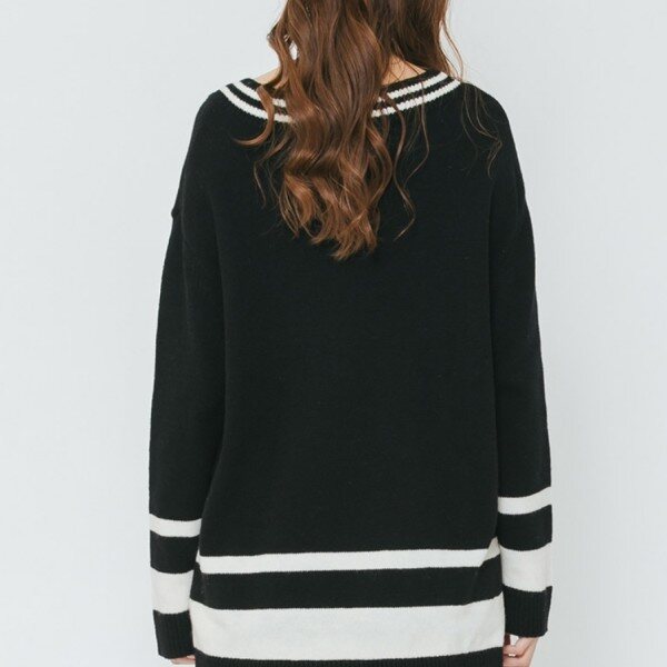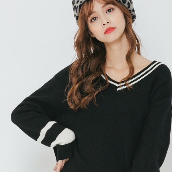 여성 브이넥 오버싸이즈 니트 티셔츠