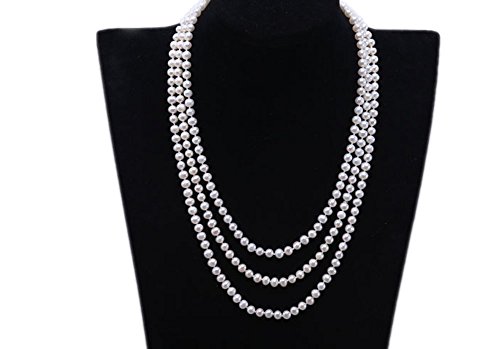 This is a single strand freshwater cultured pearl necklace mede with 6.5mm natural white pearls in perfectly round shape.