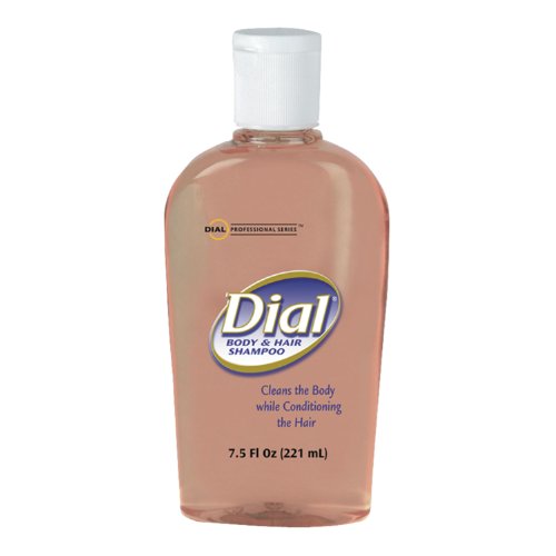 Dial body and hair shampoo, 7.5 oz. flip cap bottle, helps remove dirt and residue from hair and skin, is dispensed from a squeeze bottle with a flip-top cap, and contains moisturizers to help keep skin hydrated. It has a peach fragrance and is pH balanced with a pH of 6.5 to effectively clean hair. This shampoo has a viscosity of 8,000 and a specific gravity of 1.026.