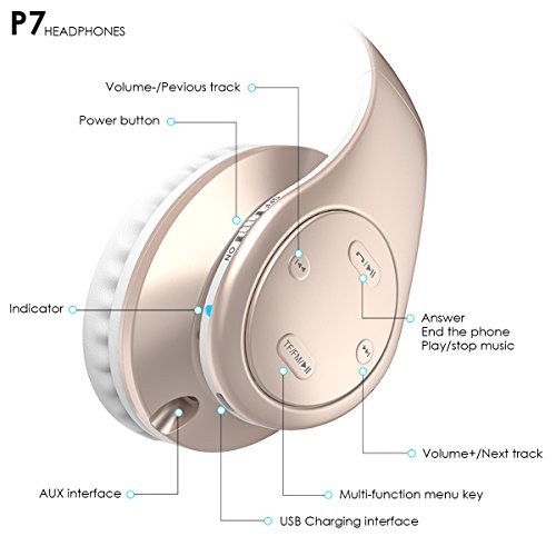 Picun P7 Bluetooth Headphones Wireless Foldable Noise Reducing Headsets With Mic and Volume Control for Kids Adults