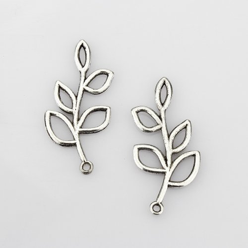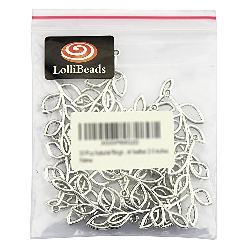 LolliBeads (TM) Vintage Antiqued Silver Tone Sideways Leaf Branches Charm Pendant Bracelet Connector - 20 Pcs