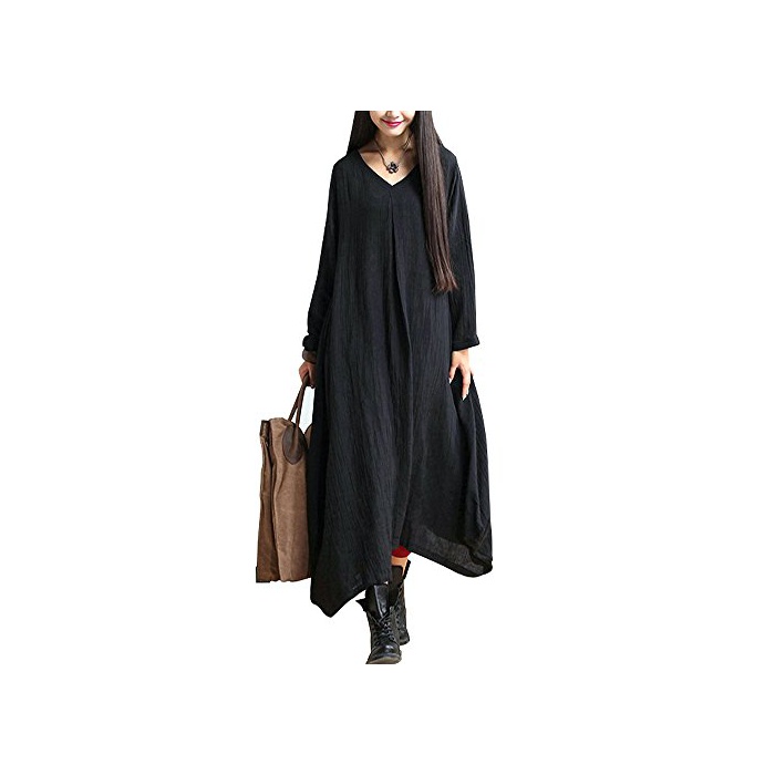 원본상품명: Spargel 大人 ナチュラル コットン マキシ 丈 長袖 ワンピス レディス ロング 丈 シンプル ブラック ゆったり 大きい フリ サイズ