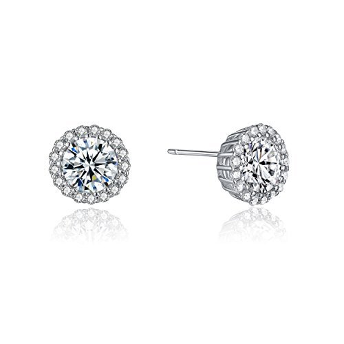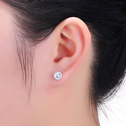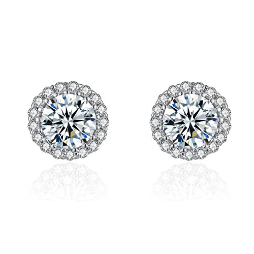 CIRCLE CUT CUBIC ZIRCONIA : this pair of round cubic zirconia stud earrings has sparkling circle cut cubic zirconia surrounded by a halo of small, beautiful stones to add a flourish of elegant glamour to your wardrobe