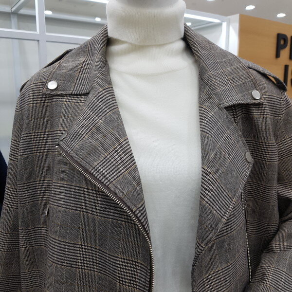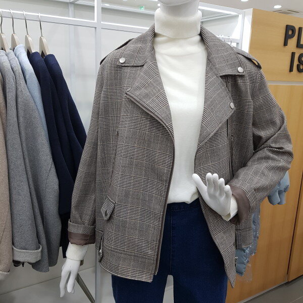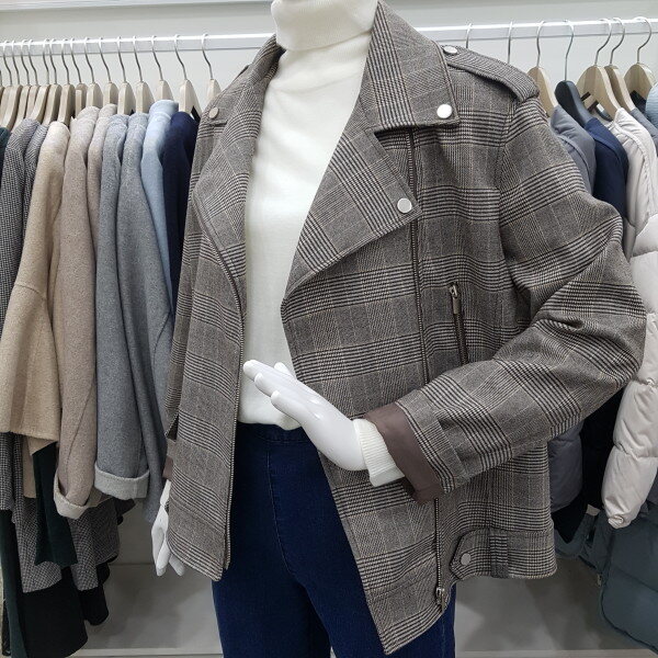 라이더자켓이예요~캐주얼하면서도 세련되고 보이시하게 코디할수잇는 아이템이죠 체크브라운과 블랙컬러 두가지컬러예요 롱원피스에 입으셔도 예뻐요