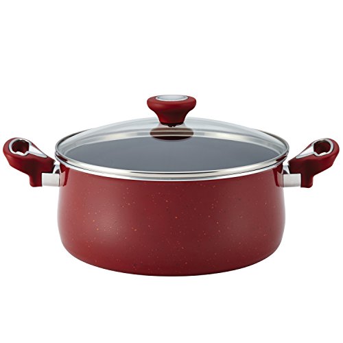 -. Feature : Includes: 4 pots with lids, 1 skillet with lid, 1 fry pan, slotted turner, slotted spoon and solid spoon / High-performance aluminum cookware / Bright speckled porcelain enamel exteriors / Durable nonstick interiors deliver excellent food release and easy cleanup Comfortable rubberized handles match the pans colors / Shatter-resistant glass lids seal in heat and moisture while cooking is monitored