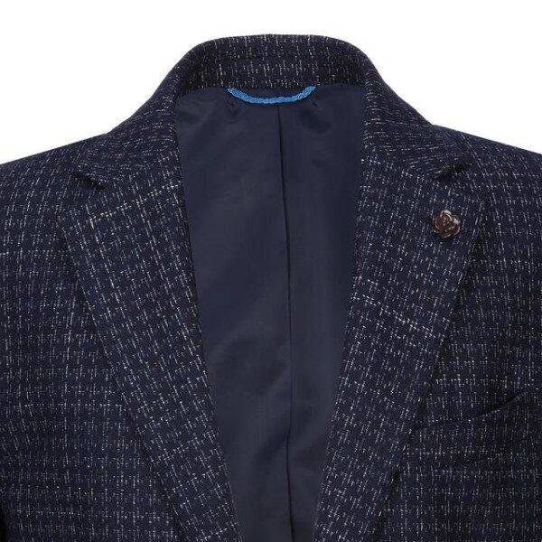 컬러를 더한 멋스러운 짜임이 돋보이는 바탕의 카라 부분으로 플라워 부토니에 장식을 포인트로 주어 세련된 외관을 연출한 긴팔 자켓입니다.