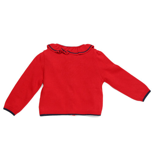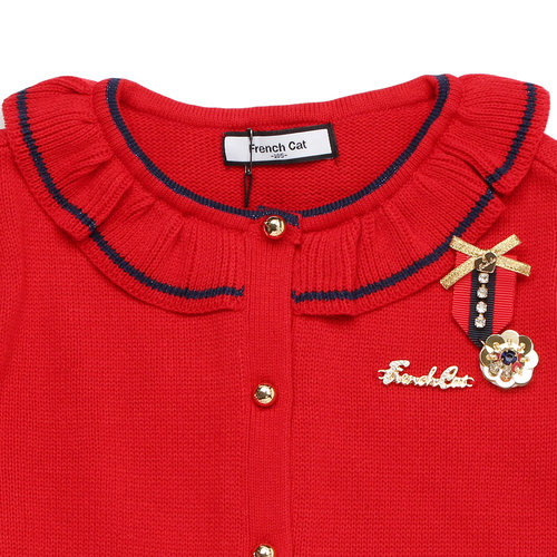 상품설명 레드컬러의 니트 가디건입니다. 네크라인에 프릴과 네이비펄팁 배색이 고급스러운 느낌을 줍니다. 간절기에 입히기 좋으며, 스커트에 코디하시면 특별한날 외출복으로도 좋습니다.