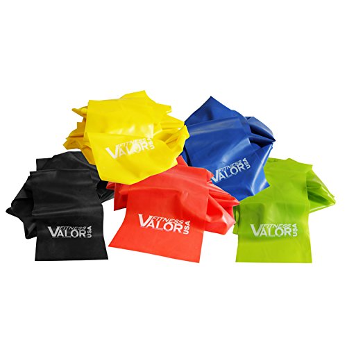 Studio : Valor Fitness Publisher : Valor Fitness Binding : Sports Product Description LBB-4 Valor Fitness Latex Band Blue: Latex bands measure in resistance from lightest to heaviest starting with LBY-1 (yellow) and ending with LBK-5 (black). Latex bands can be purchased as an entire set (5 bands) or individually. Bands measure approx. 8' long by 4.5"w. Latex bands may be small, but when they're stretched they provide tension that your muscles must overpower. If you don't have access to a gym or to weights at home, latex bands can provide an inexpensive and portable way to strength train. You can target all the major muscles in your body with the bands to improve your strength and endurance. Resistance: Yellow = Light Red = Medium Green = Medium-Heavy Blue = Heavy Black = Extra Heavy. 0
