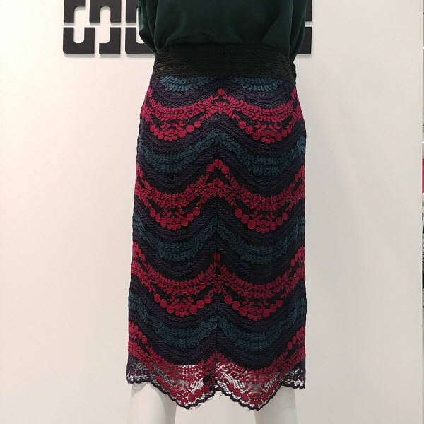 레이스 스커트로 우아하게 연출하기 좋고 컬러 배색이 들어가 옷 받쳐 입기도 좋은 디자인입니다 허리에는 밴드가 들어가 있어 착용시라인을 잡아주어 편하고 체형 커버 하기도 좋습니다 안정감 있는 스타일로 밑단까지 레이스패턴을 살려 여성스럽게 디자인 하였습니다 23 1/2 인치 기장입니다