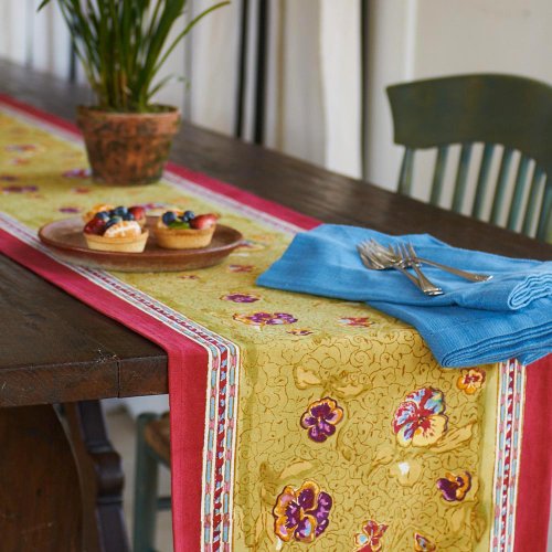 Couleur Nature 16-inches by 90-inches Pansy Runner, Red/Green