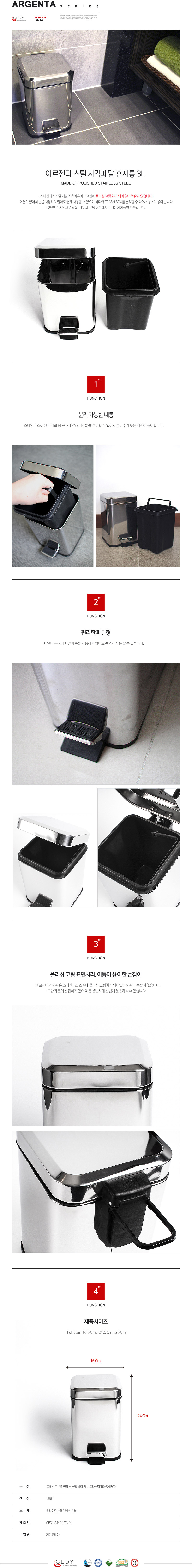 상품명 : 이태리 게디 GEDY 아르젠타 사각 페달 휴지통 3L