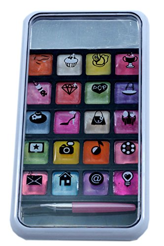 LOOKS JUST LIKE A SMARTPHONE: This fun cosmetics kit features a variety of lip glosses, using each shade as a "button" on this delightful smartphone setup.