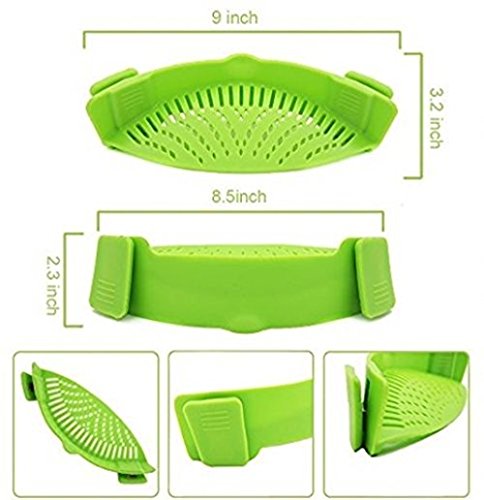 INNOVATIVE - Flexible silicone snaps onto nearly All Size pots, pans and bowls, big and small. Attaches easily with two strong clips will keep the colander in place when straining pasta, vegetables, even Heavy Potatoes!