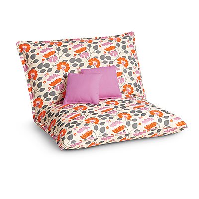 This lounge chair has a sturdy frame inside the soft, blossom printed cushion. It's perfect for sleepover fun-use it as a seat when they're playing games, then fold it down to use as a futon! Includes two pink pillows to match.