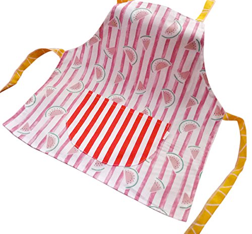 FANCYKIDS Toddler Little Girls Boys Baking Bakeware Cute Chef Baking Top Apron with Pocket (2 to 3 Years Old, Watermelon)