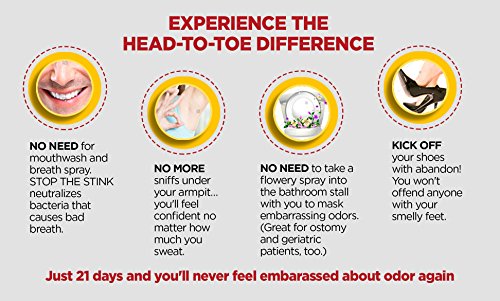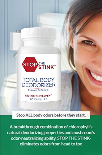 Studio : American Nutritional Products Publisher : American Nutritional Products Binding : Health and Beauty Product Description All Odor Starts On The Inside STOP THE STINK - Total Body Deodorizer works from the inside out to eliminate body, bad breath, fecal odor and many report that foot odor is eliminated as well. Body odors are caused by the breakdown of bacteria, which give off smelly byproducts. This revolutionary new formula stops unwanted body odors before they even start. Just two capsules per day balances your bodychemistry. The Proven Power of Chlorophyllin is derived from natural plant chlorophyll. Studies over the past 60 years have shown it to be an effective but incomplete solution to neutralizing body odors. While it helps reduce body odors, it doesn't completely eliminate them. Breakthrough Mushroom Odor Control Mushrooms, one of the oldest life forms on the planet, have the astonishing ability to clean and transform their surrounding environment. These humble fungi have recently been put to use cleaning up oil spills, breaking down toxic chemicals, and decontaminating radiation. When used to filter septic systems, they eradicate odor-causing bacteria. Mushrooms don't just mask odors. They completely neutralize them. Mushrooms take in odor-causing bacteria and bacterial waste products and break them down, leaving the host environment clean and odor free. Whether you are concerned about body odor, bad breath, foot odor, or even stinky poop, two capsules a day of STOP THE STINK Total Body Deodorizer is all it takes to eradicate odors and keep you feeling fresh. Mushrooms can clean and transform entire ecosystems ... including the ecosystem that is your body. THE SCIENTIFIC DATA showed a difference in 21 days or less. 0