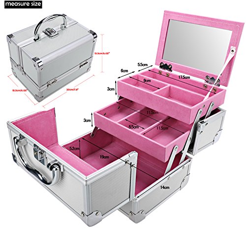 Homdox Extendable Makeup Train Case Aluminum Cosmetic Box With Mirror Jewelry Box Cosmetic Organizer