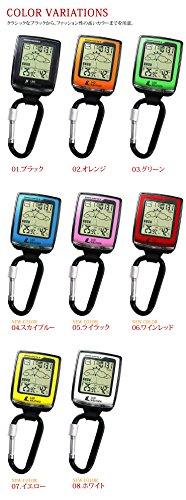 -. Feature : 全部で8色あります。この商品は 08. ホワイト になります。 / 【機能】 ■アメリカ製センサー搭載 ■ロック機能付きカラビナ付属 ■高度計 ・気圧を基に現在地の高度の計測 計測範囲:-999 ~ 9999 m / -2999 ~ 19999 ft ・高度の傾向を矢印で表示 上昇/下降高度が1分間に11メートル以上の場合アイコンで表示 ・現在地の高度の修正 ・最高/最低高度の記録、表示 ・表示単位はm(メートル)とft(フィート)に対応 / ■気圧計 ・現在地の気圧の表示 計測範囲:800hPa ~ 1099.9 hPa(mbar) / 23.63 ~ 32.49 inHg ・気圧の傾向を矢印で表示 気圧の上昇/下降が15分間に0.8hPa以上の場合アイコンで表示 ・現在地の海面気圧の修正 ・最高/最低気圧の記録、表示 ・過去の気圧を自動記録 ・過去の気圧を数値で表示(1~12時間前のデータを表示) ・過去の気圧をグラフで表示(1、2、3、6、12時間前のデータを表示) ・表示単位はhPa mbar (ヘクトパスカル ミリバール)とinHg(水銀柱インチ)に対応 ■デジタルコンパス ・方位(16方位)、方角(0°~359°)、矢印アイコンの表示 ・連続計測可能 ・キャリブレーション(センサーの偏りを修正)とデクリネーション(磁気偏差の修正)でコンパスの調整・修正が可能 / ■気温表示 ・現在の気温を表示 計測範囲:-10 ~ 60℃ / 14 ~ 140°F ・気温の傾向を表示 気温の上昇/下降が1分間に0.5℃以上の場合アイコンで表示 ・最高/最低気温の記録、表示 ・表示する単位は℃(摂氏)と°F(華氏)に対応 ■湿度計 ・現在の湿度を表示 継続範囲:20 ~ 99% ・湿度の傾向を表示 湿度の上昇/下降が15分間に2%以上の場合アイコンで表示 ・最高/最低湿度の記録、表示 ■天気予測 ・気圧の変化を元に、今後の天気を4つのアイコン(晴れ・晴れ時々曇り・曇り・雨)で予測 ■快適さの指標 ・気温、湿度を元に快適さをWET(多湿)、COMFORT(快適)、DRY(乾燥)の3段階で表示 ■時刻表示 ・時、分の表示 ・12時間/24時間表示切替可能 ■電池残量低下アイコン表示 / 【仕様】 駆動方式:電池式 表示方式:デジタル表示 裏蓋:ネジ留め式 防水:日常生活 【素材】 本体:ABS ガラス:アクリルガラス カラビナ:金属 【サイズ】 全長:約12.3x4.3x2.3cm (縦x横x厚) 本体サイズ:約4.4x5.6x2.3cm (縦x横x厚) カラビナ:約6.1x3.4x0.5cm (縦x横x厚) 重量:約38g(本体のみ)、約47g(カラビナ含む) 開口幅:約5cm 【付属品】 専用BOX 取扱説明書(日本語) メーカー正規保証 【種別】 新品未使用 正規品